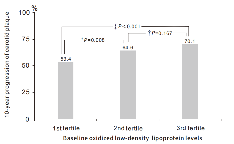 ●在健康的中年男性中,高ox-LDL水平個(gè)體患冠心病的風(fēng)險(xiǎn)比正常個(gè)體高4倍