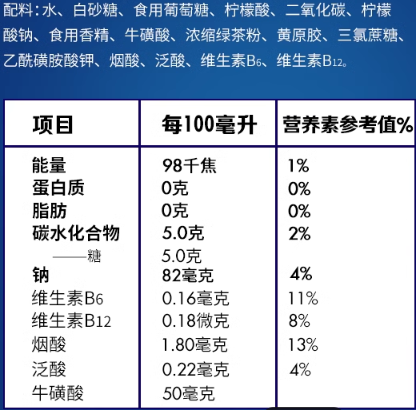 根據(jù)《GB/T10789—2015飲料通則》中的規(guī)定,功能飲料屬于特殊用途飲料的一種。其主要成分有咖啡因、?;撬帷⒐侠{、左旋肉堿、育亨賓、B族維生素、山梨酸、苯甲酸、甘氨酸、肌醇、三氯蔗糖、酒石酸鹽、麥芽糊精和其他糖類(lèi)。