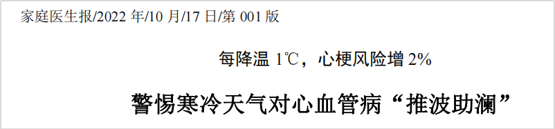 相關(guān)數(shù)據(jù)顯示,氣溫每降低1℃,心腦血管疾病發(fā)生風(fēng)險則增加2%。其中女性、老年人(≥65歲)相較于男性和年輕人而言,更容易發(fā)生心腦血管疾?。淮送夥枪┡貐^(qū)發(fā)生的風(fēng)險遠(yuǎn)高于供暖地區(qū)。尤其是對于合并了其他慢性疾病的患者而言,發(fā)生的風(fēng)險更大,更加需要防護(hù)....