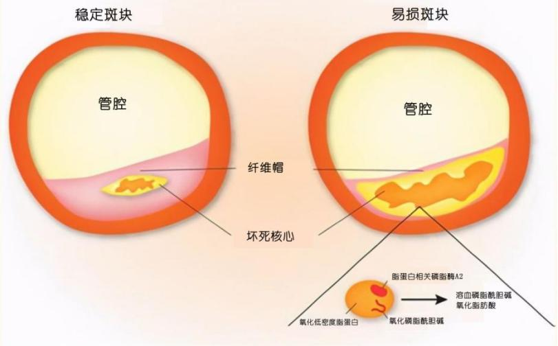 硬斑塊相對(duì)來說比較穩(wěn)定,而軟斑塊和混合斑塊穩(wěn)定性差,醫(yī)生們習(xí)慣稱其為易損斑塊。