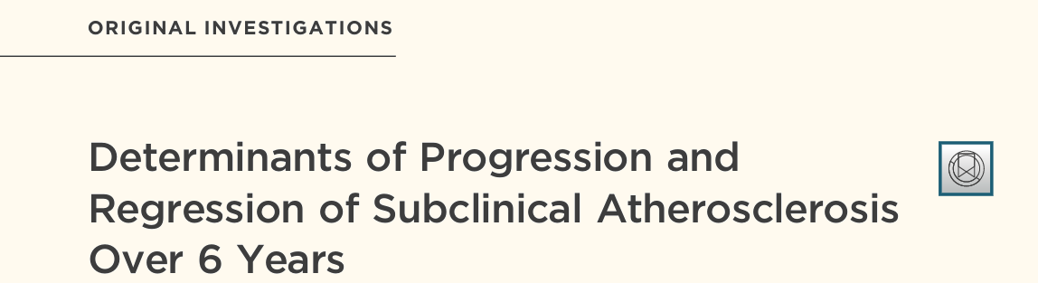 于2023年刊登于《美國(guó)心臟病學(xué)會(huì)雜志》(JACC)上的研究顯示:如果在中青年時(shí)就開始采取預(yù)防性干預(yù)措施,動(dòng)脈粥樣硬化斑塊有“消退”的可能,且如果能從疾病早期控制風(fēng)險(xiǎn)因素,則可實(shí)現(xiàn)動(dòng)脈粥樣硬化疾病的早期“治愈”(即斑塊的完全消退)。
