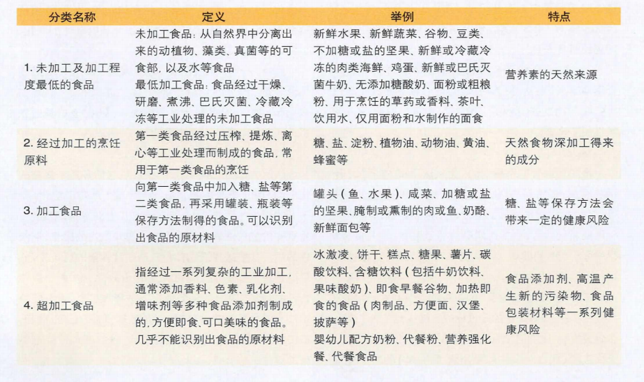 大多數(shù)食物在我們食用之前都以某種方式進(jìn)行了加工。根據(jù)食品的加工性質(zhì),將其分為4類: