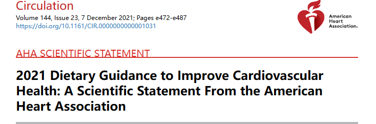 美國(guó)心臟協(xié)會(huì)(AmericanHeartAssociation,AHA)在Circulation雜志上發(fā)布了《2021AHA促進(jìn)心血管健康膳食指南》。新的膳食指南中提出了控制能量平衡、保持健康體質(zhì)量、增加水果蔬菜的攝入、偏向選擇全谷物食品、減少精加工食品的攝入、避免攝入超加工食品、合理使用植物油、盡量減少含糖食物、選擇低鹽飲食、合理控制飲酒等建議。